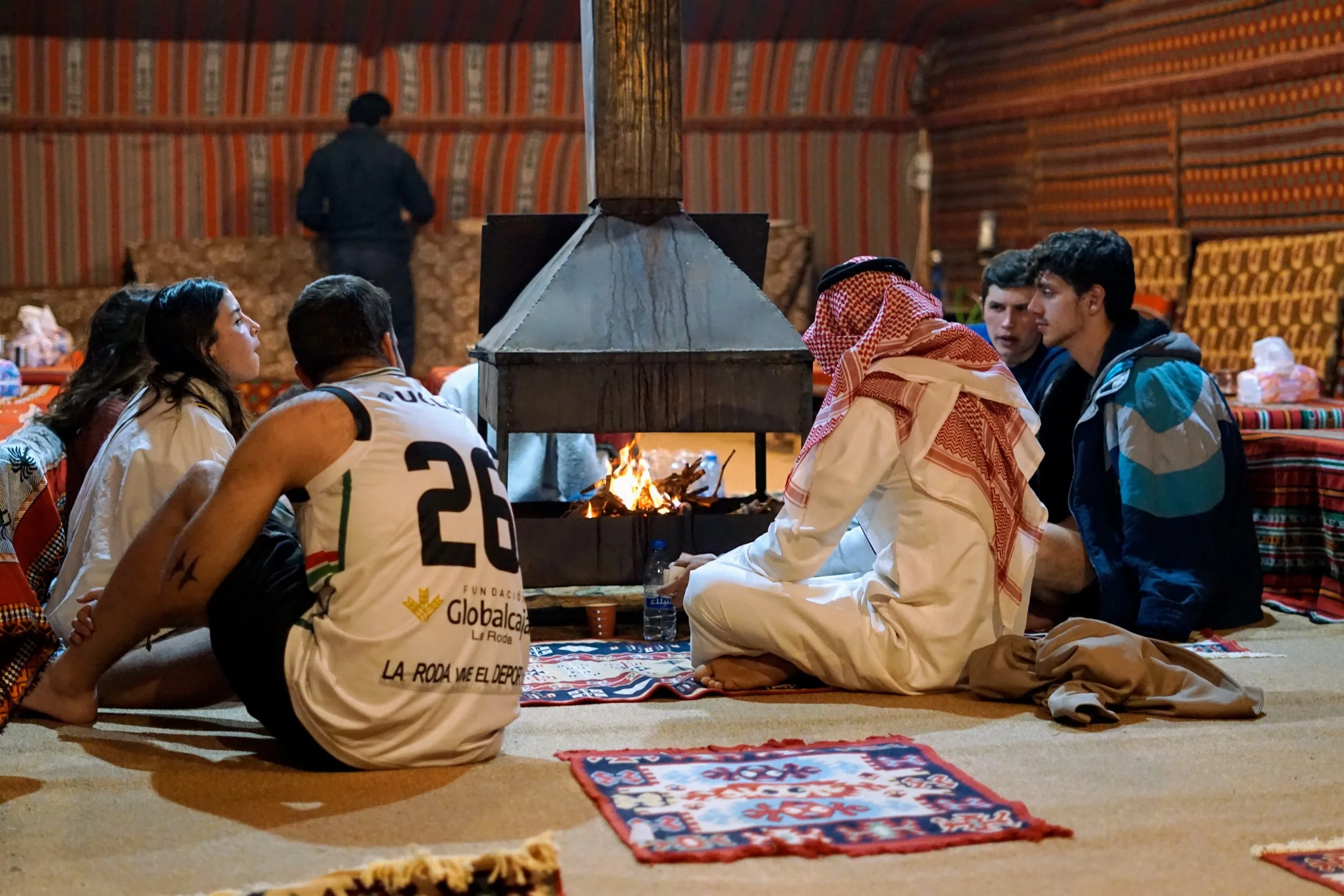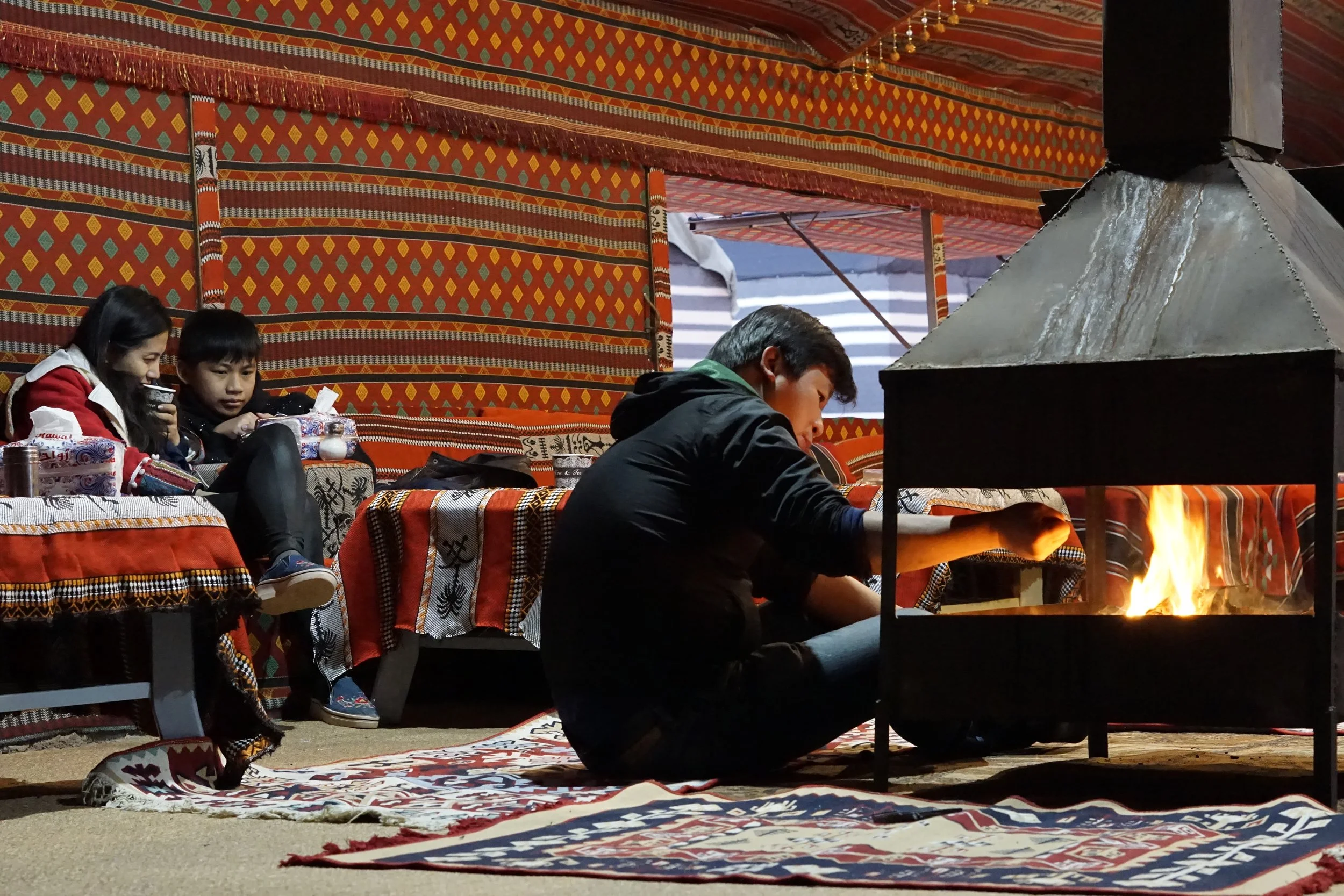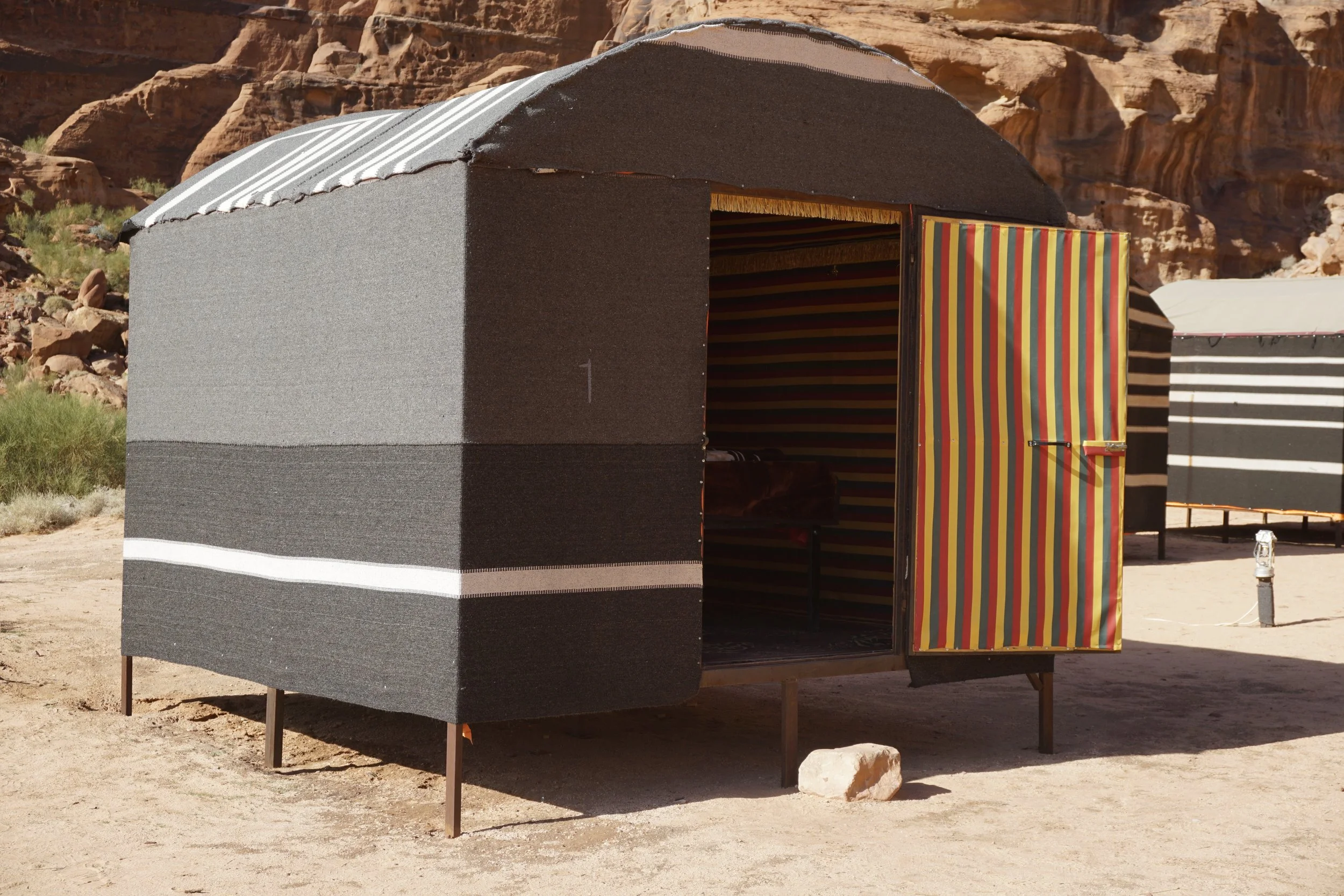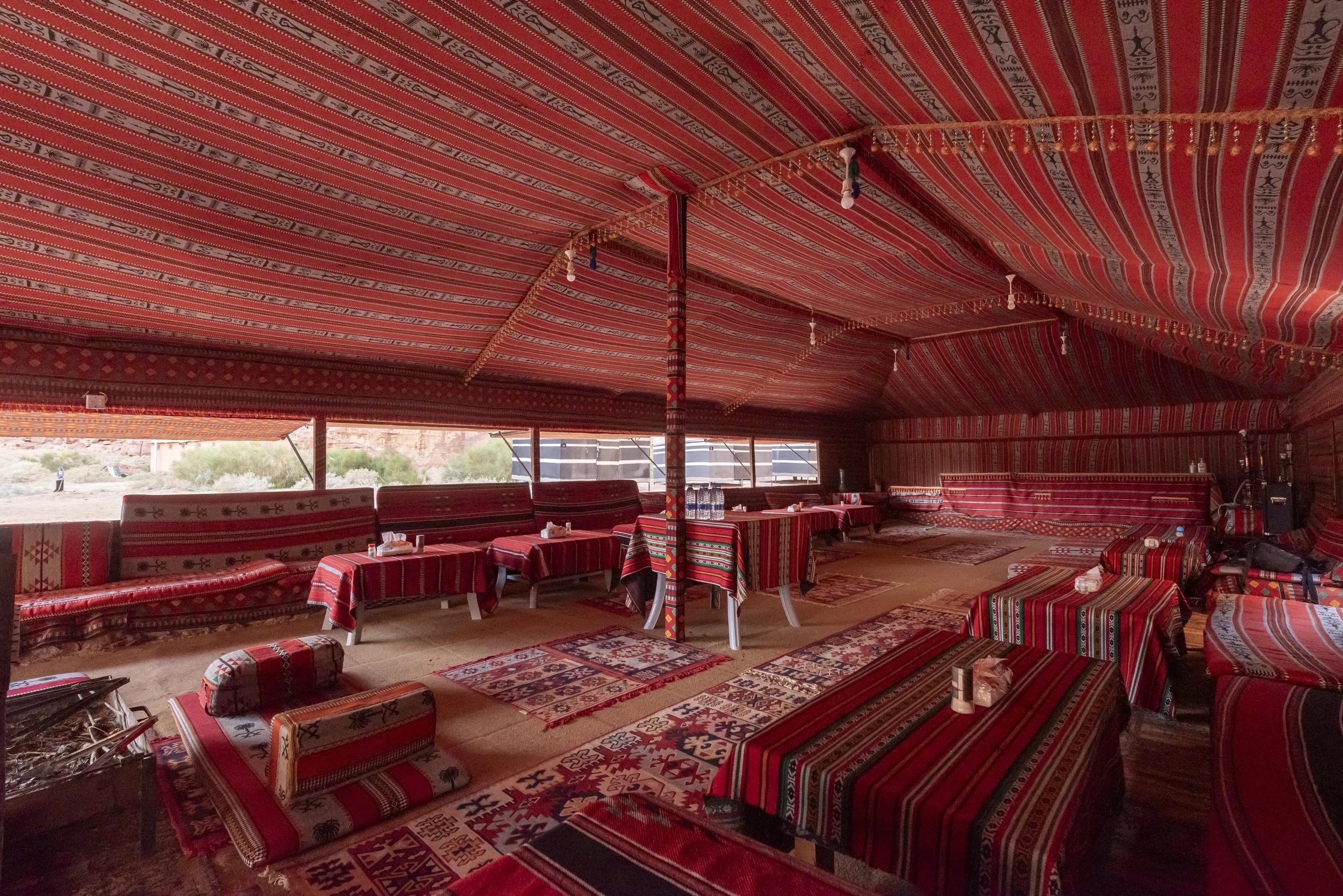 La capa exterior de las tiendas está hecha con pelo de cabra, el material utilizado por los beduinos durante siglos. En su recorrido por el desierto de Wadi Rum, es posible que vea algunas tiendas beduinas tradicionales hechas de este mismo material. Algunos de los beduinos de Wadi Rum siguen llevando un estilo de vida nómada, al menos durante parte del año.