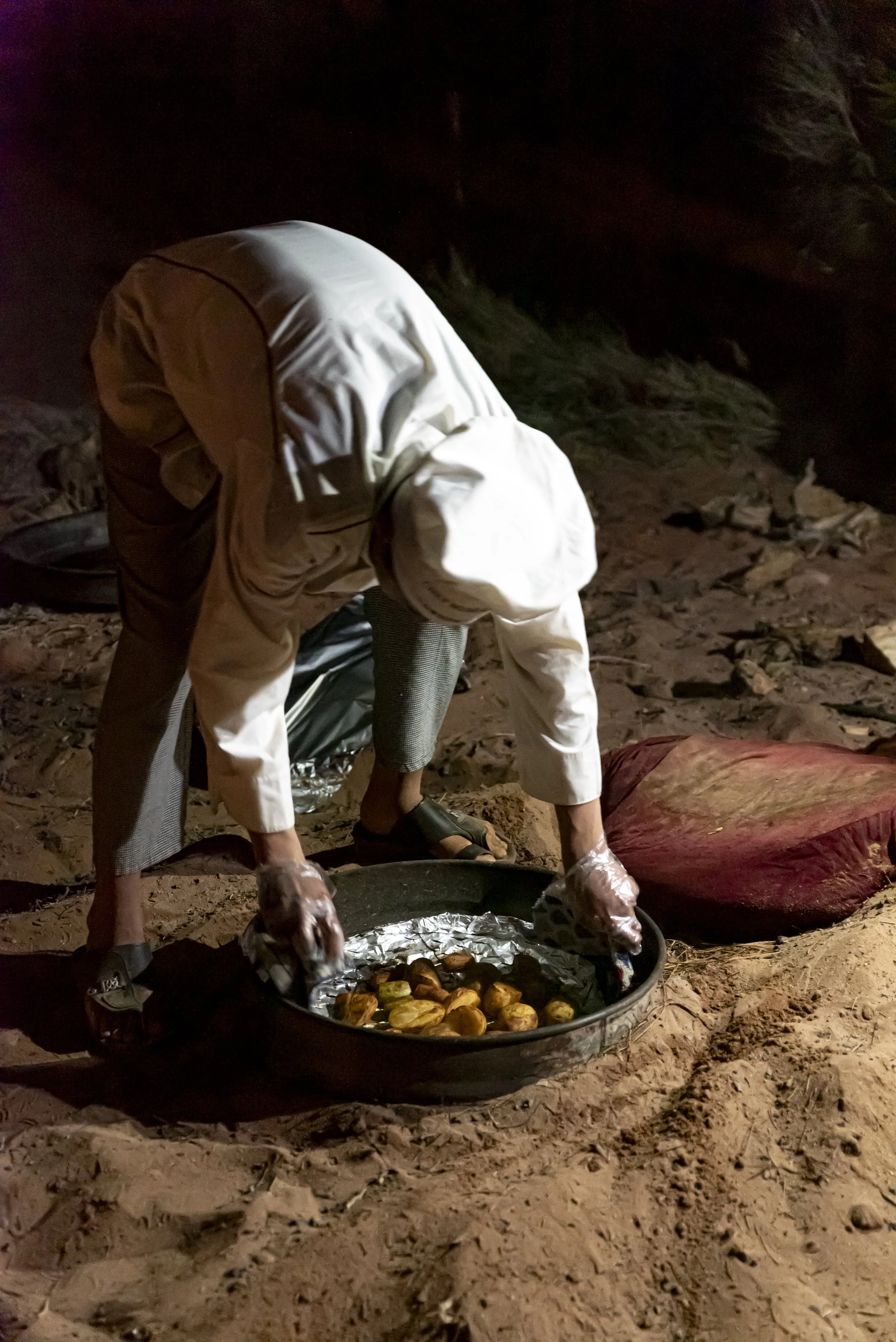 Mientras usted está ocupado disfrutando de su té, su guía seguirá atendiendo el fuego y preparando la cena. La cena consistirá en una variedad de platos preparados con ingredientes locales. Comerá bien con nosotros en el desierto.