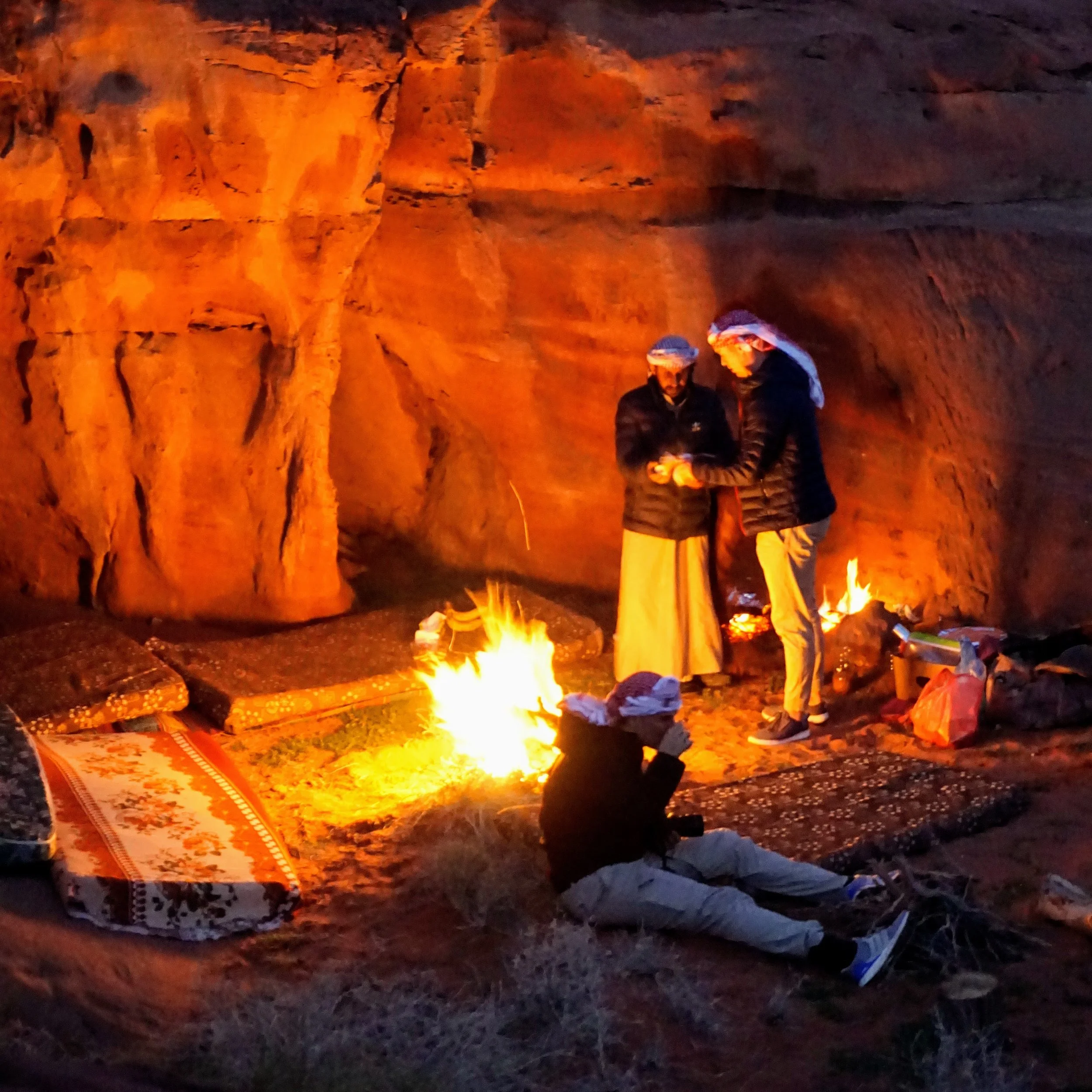 Tras la cena, podrá disfrutar de una velada alrededor de la hoguera mientras su guía le habla de la vida en el desierto.
