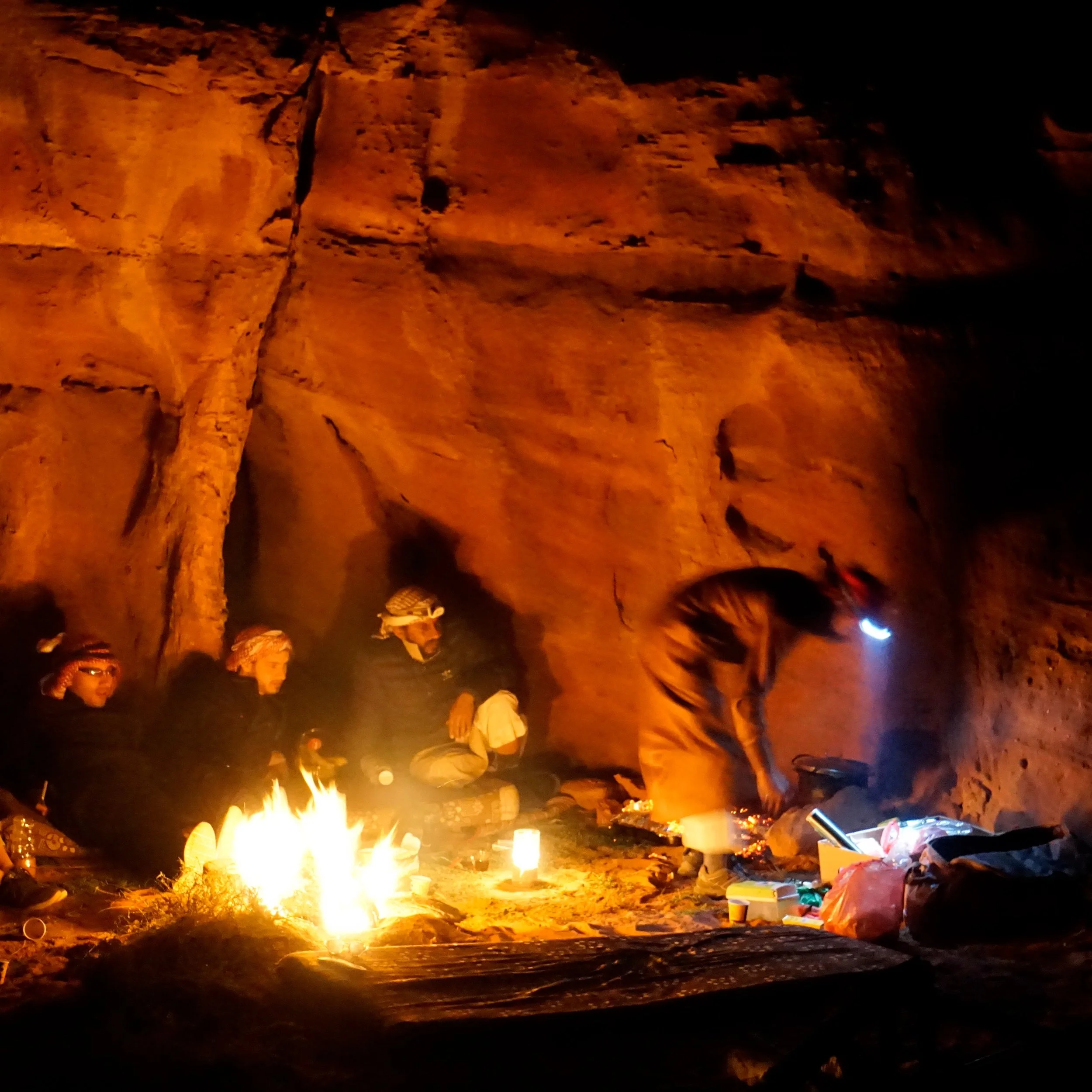 Tras la puesta de sol, su guía comenzará a preparar una hoguera para preparar la cena y el té beduino. Compartir un vaso de té dulce beduino es una parte importante de la cultura local.