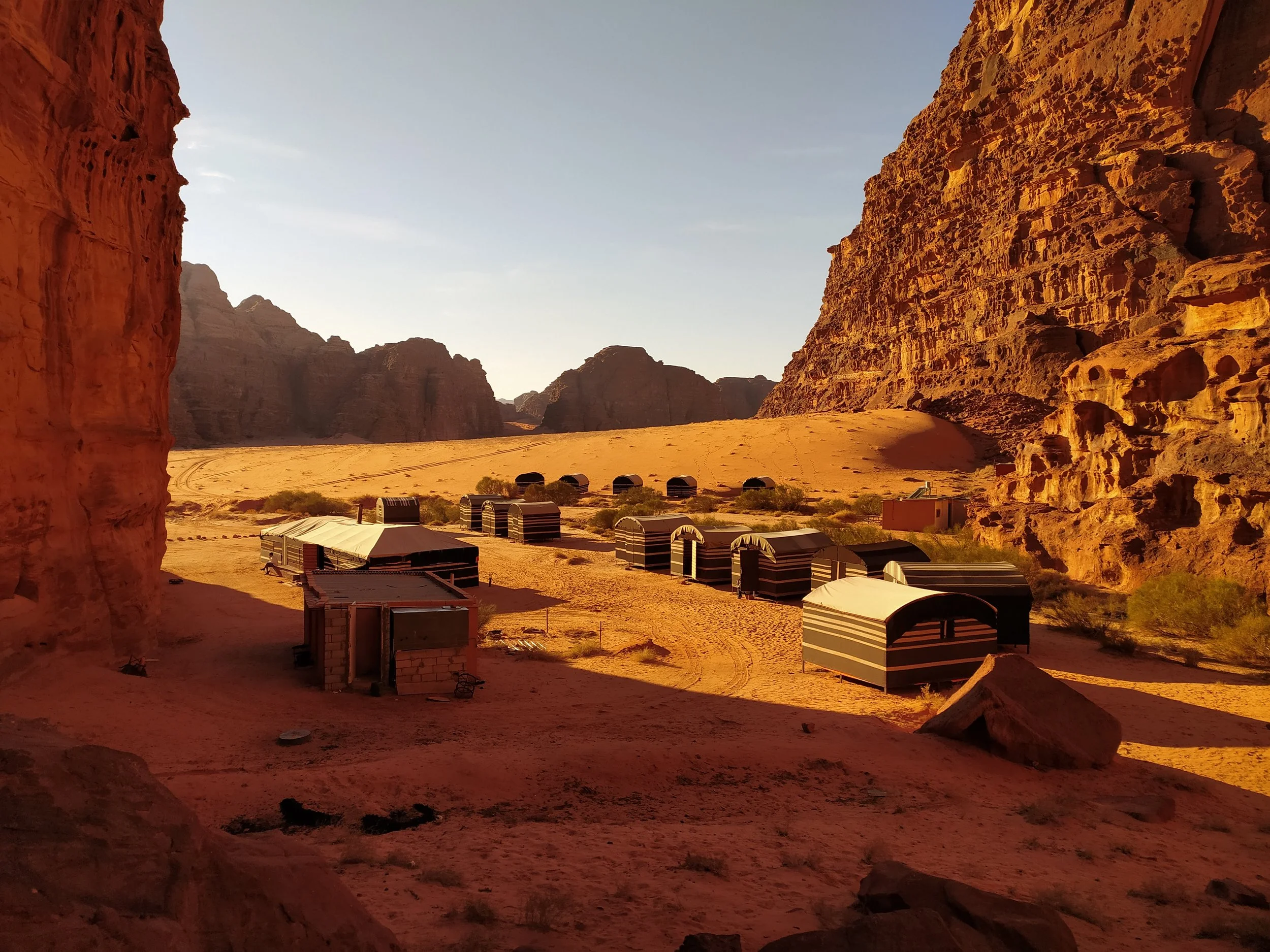El campamento de Wadi Rum Nature Tours al amanecer.