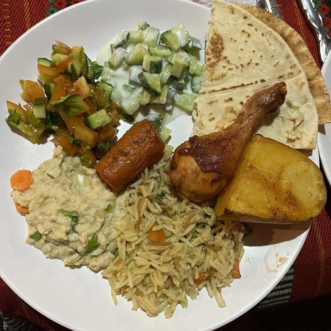 Nuestro desayuno suele incluir huevos, queso, mermelada, pan, fruta, zaatar, halva, té, café y mucho más.